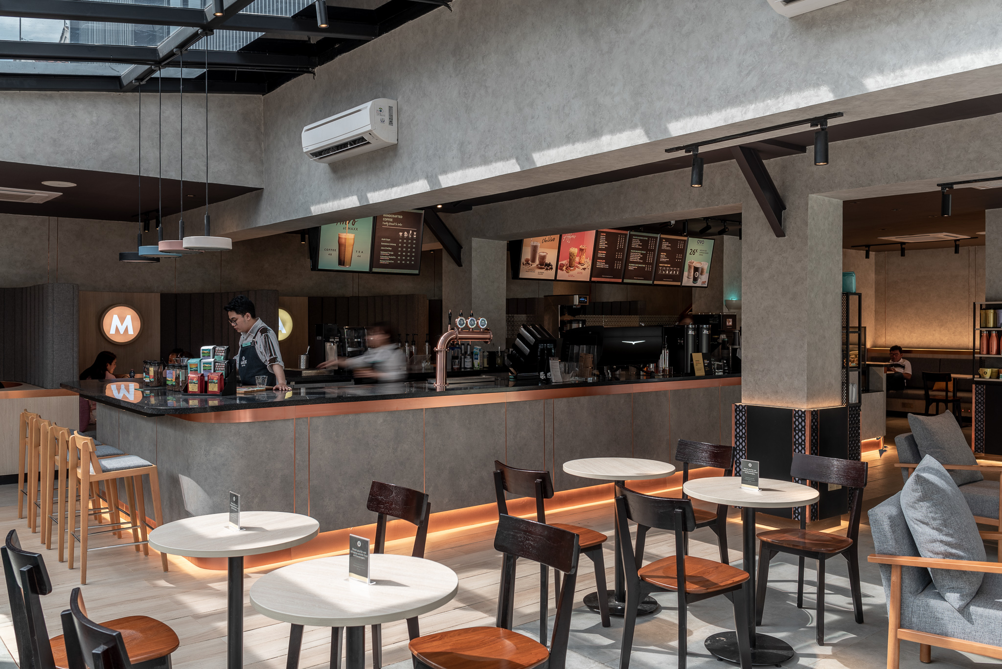 The Indonesian coffee chain Maxx Coffee commissioned Greater Group to design their pilot flagship store in North Jakarta’s Kelapa Gading district and provide design guidelines for future stores. The brief was to design a store that reflects the new Maxx Coffee branding, which was developed during a major brand identity revamp that kicked off in 2018.